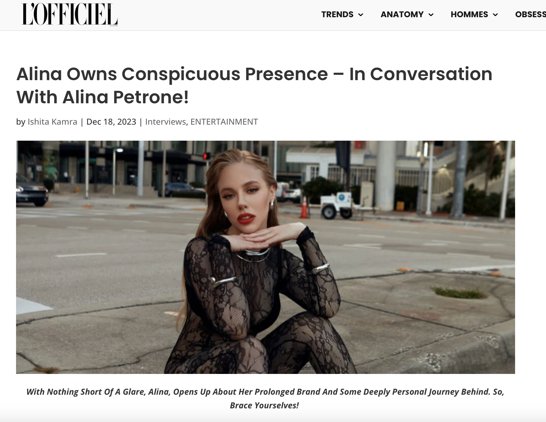 Founded by Alina Petrone in 2019, the brand creates limited-run pieces that make an entrance—crafted for unforgettable nights, statement moments, and women who dress with intent. Every collection is precise, sensual, and made to be seen.