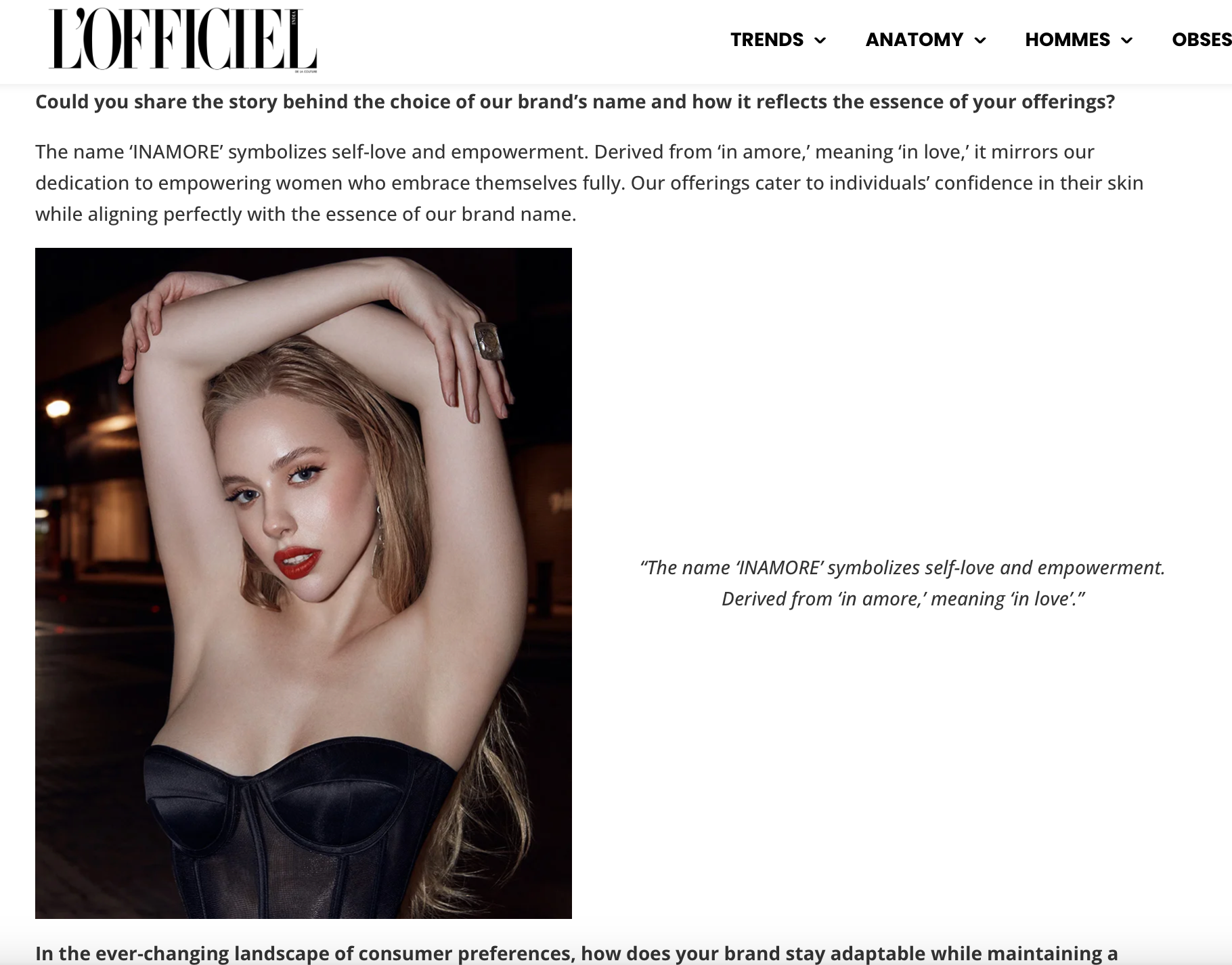 Defined by structured design and fearless femininity, INAMORE is for women who move with purpose and leave a lasting impression.